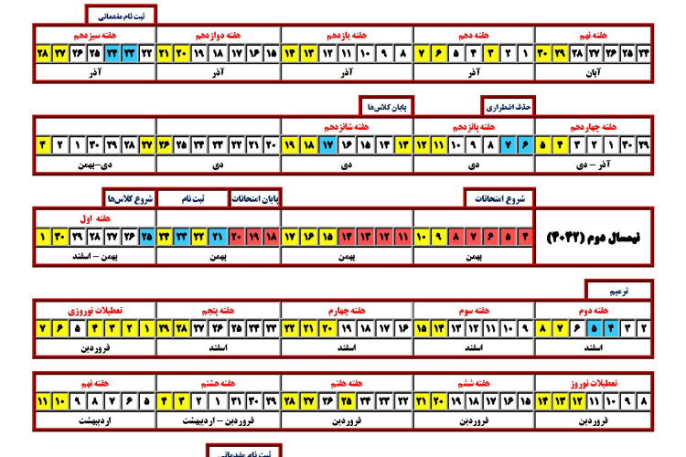 تمديد سنوات ترم 4042 و ضرورت رعايت برنامه زمان بندی