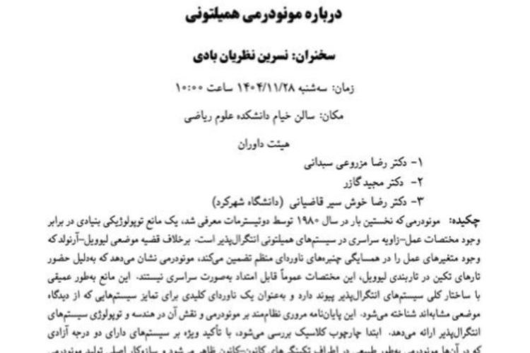 برگزاري سمينار چندجملهای های پایدار و حدس واندرواردن